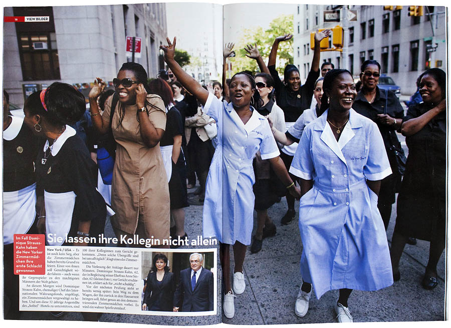 Photograph of hotel workers protesting outside of Dominique Strauss-Kahn’s arraignment hearing by Michael Nagle.