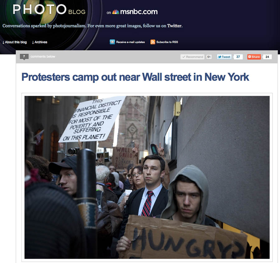 Photograph of Wall Street Protests, by Michael Nagle; shot for Getty Images, Published in The Seattle Times.